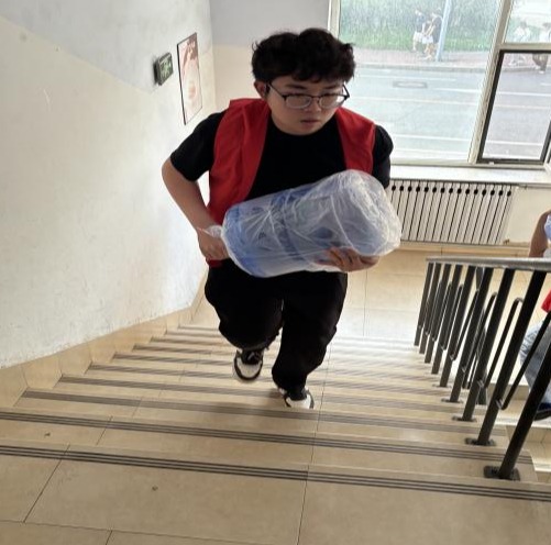 6月11日,电气信息学院“滴水传情”志愿活动如期开展。7名男生志愿者化身“送水小哥”,为女生寝室搬运桶装水,累计送达8桶。