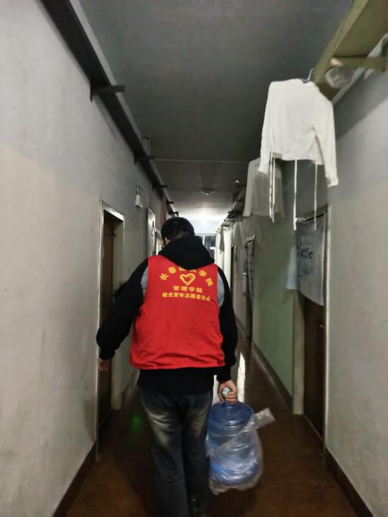 活动中,志愿者们先认真记录需要送水的宿舍信息,随后迅速投入工作。他们按照登记顺序有序忙碌,全程分工协作、衔接顺畅:有的负责稳健搬运水桶,有的精准核对宿舍信息并记录配送状态。志愿者们往返于楼梯间,即便胳膊渐渐发酸,依旧热情满满。他们用行动践行了“奉献、友爱、互助、进步”的志愿精神,让温暖渗透在每一次敲门与问候中。