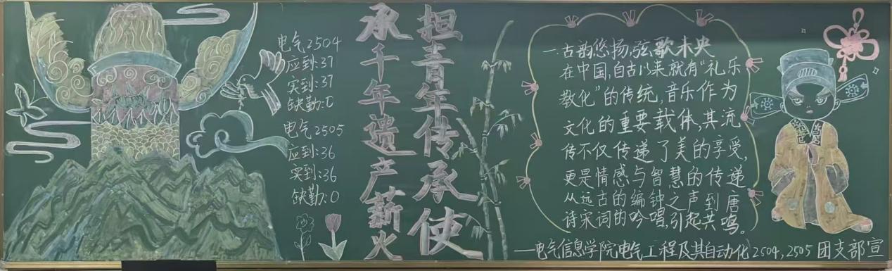 此次评比活动,不仅是一场视觉艺术的展示,更是一堂生动的思政实践课。它以独具匠心的艺术形式,凝聚了班级向心力,丰富了校园文化内涵,并将“传承”这一宏大主题具象化为方寸黑板上的青春画卷。活动在潜移默化中涵养了学生情操,为推进优良学风、培育时代新人注入了蓬勃的青春动能。