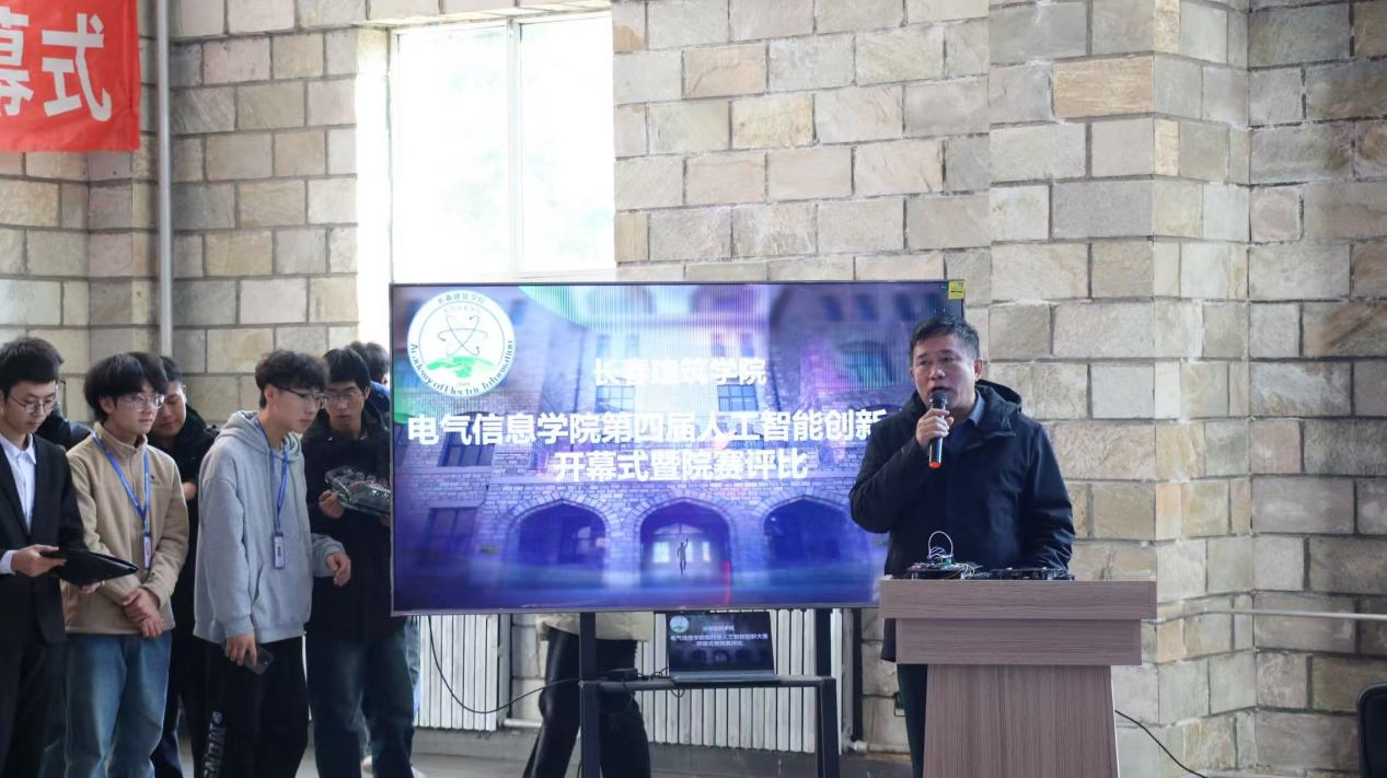 开幕式上,副院长贾友波首先致辞。他特别提到,本届赛事中大一新生报名人数突破400人,展现了新生代对科技竞赛的浓厚兴趣和敢想敢试的拼搏精神。贾院长还肯定了大二、大三同学在“传帮带”行动中的积极作用,认为这种薪火相传的形式充分体现了学院“以赛促学”的教学理念。他鼓励同学们在比赛中锤炼专业本领,在创新实践中实现自我成长,并郑重宣布大赛正式开幕。
