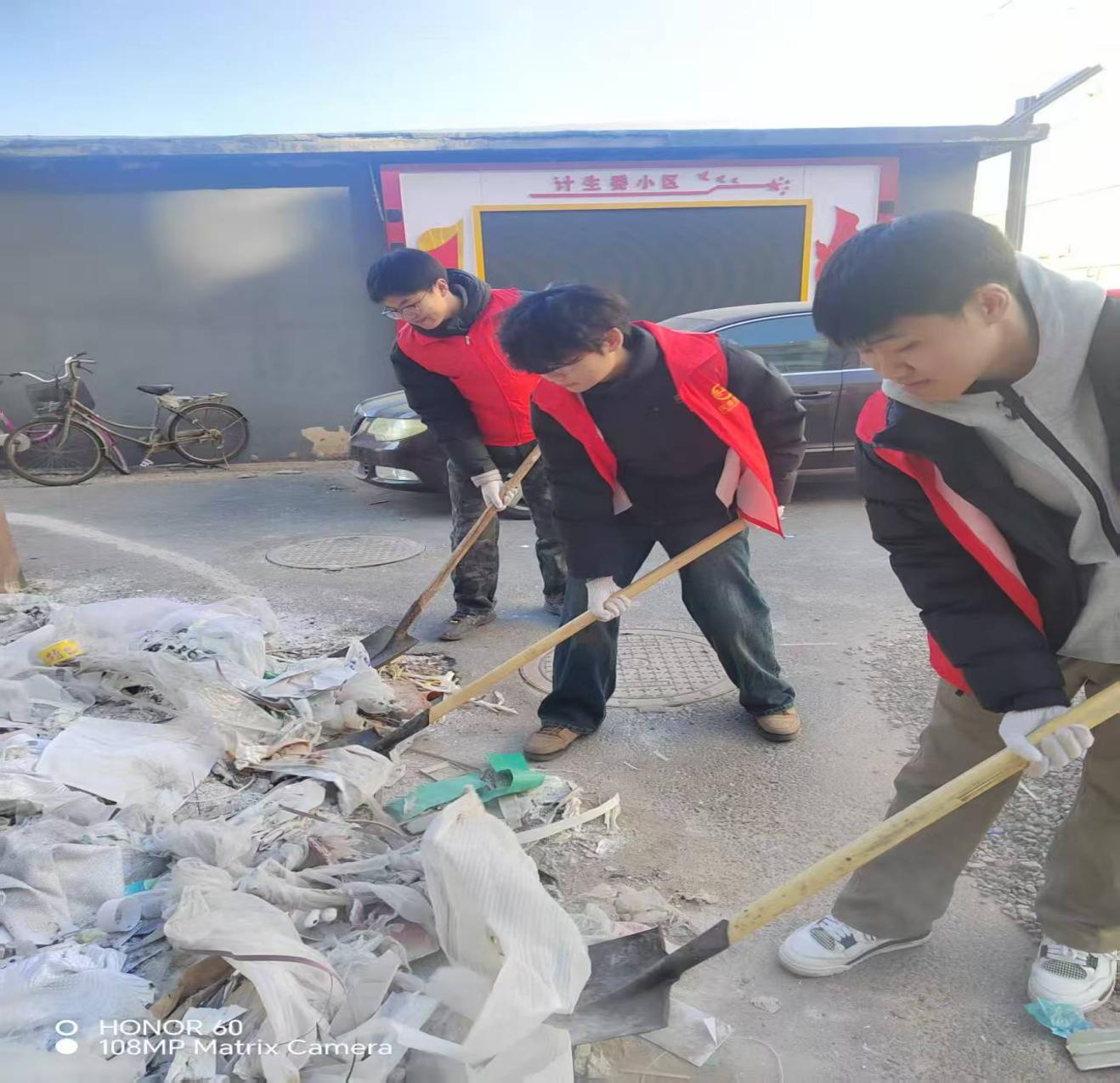 谈及实践初衷,牛晨沣表示最初只是希望为家乡尽一份力,而穿上红色志愿马甲后,他从搬运物资的“后勤兵”变为清理街巷的“环境卫士”,对“奉献”有了真切体悟。他感慨道:“奉献不是宏大的口号,而是一袋米的传递、一锹垃圾的清理、一句耐心的讲解。”通过基层实践,他既感受到琐碎工作中的细致与温暖,也体会到劳动被认可的满足,更深刻理解了“共建共享”背后是无数平凡小事的累积。未来,他将继续带着这份热忱,以实际行动践行新时代青年的责任,让青春在服务家乡的实践中绽放光彩。