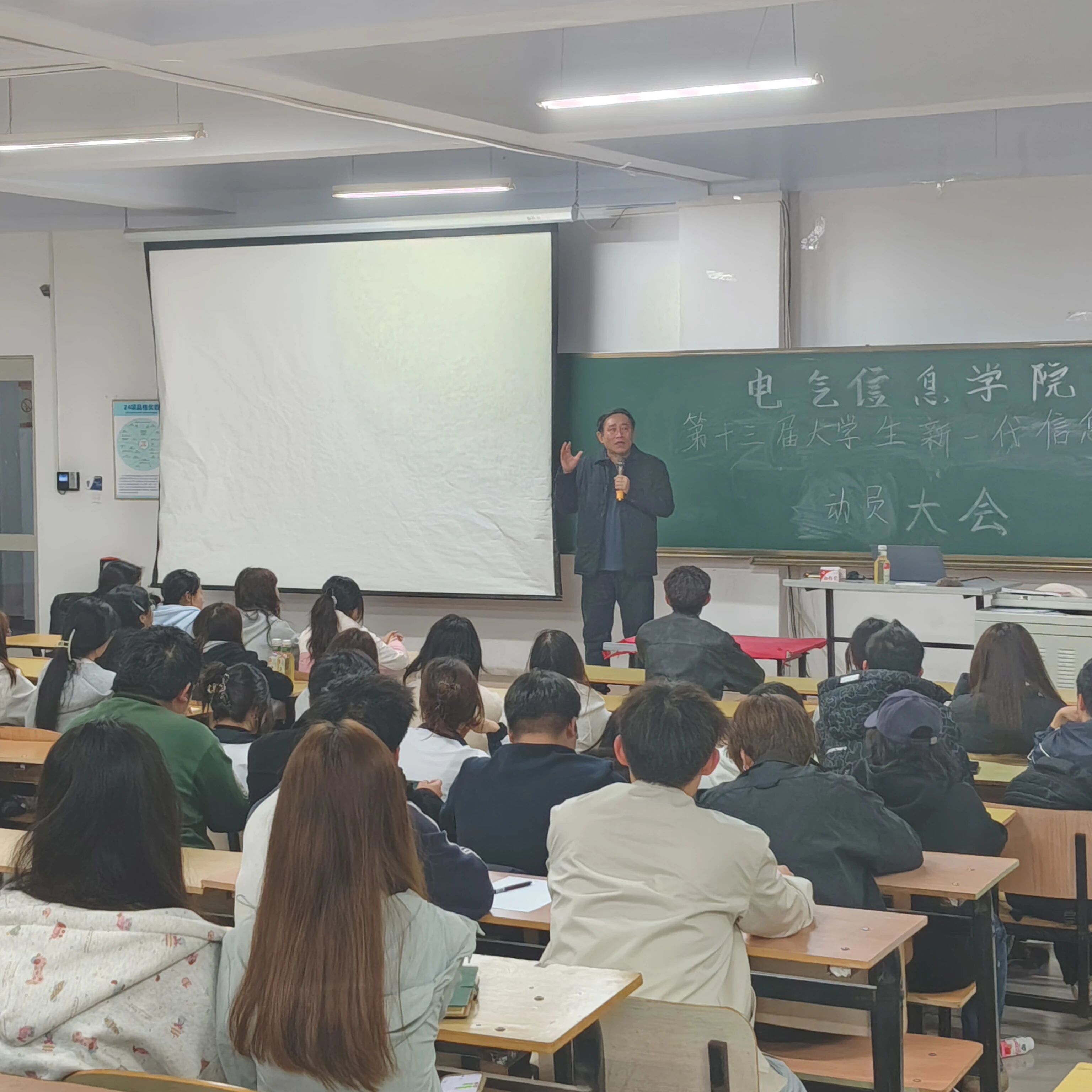 为帮助参赛同学进一步明确竞赛规则与要求,强调本次对比往年的变化,充分调动备赛积极性,强调关键注意事项,有效化解赛前疑虑,全力备战第十三届"大唐杯"暨新一代信息通信科技大赛,激发学生创新热情、提升团队协作能力、深化对新一代信息通信技术的理解认知,4月15日,我院于DX202成功举办了赛前动员大会。本次动员大会由电气信息学院党总支书记穆长青主讲,来自各个专业和年级的参赛学生共200余人积极参加了活动。